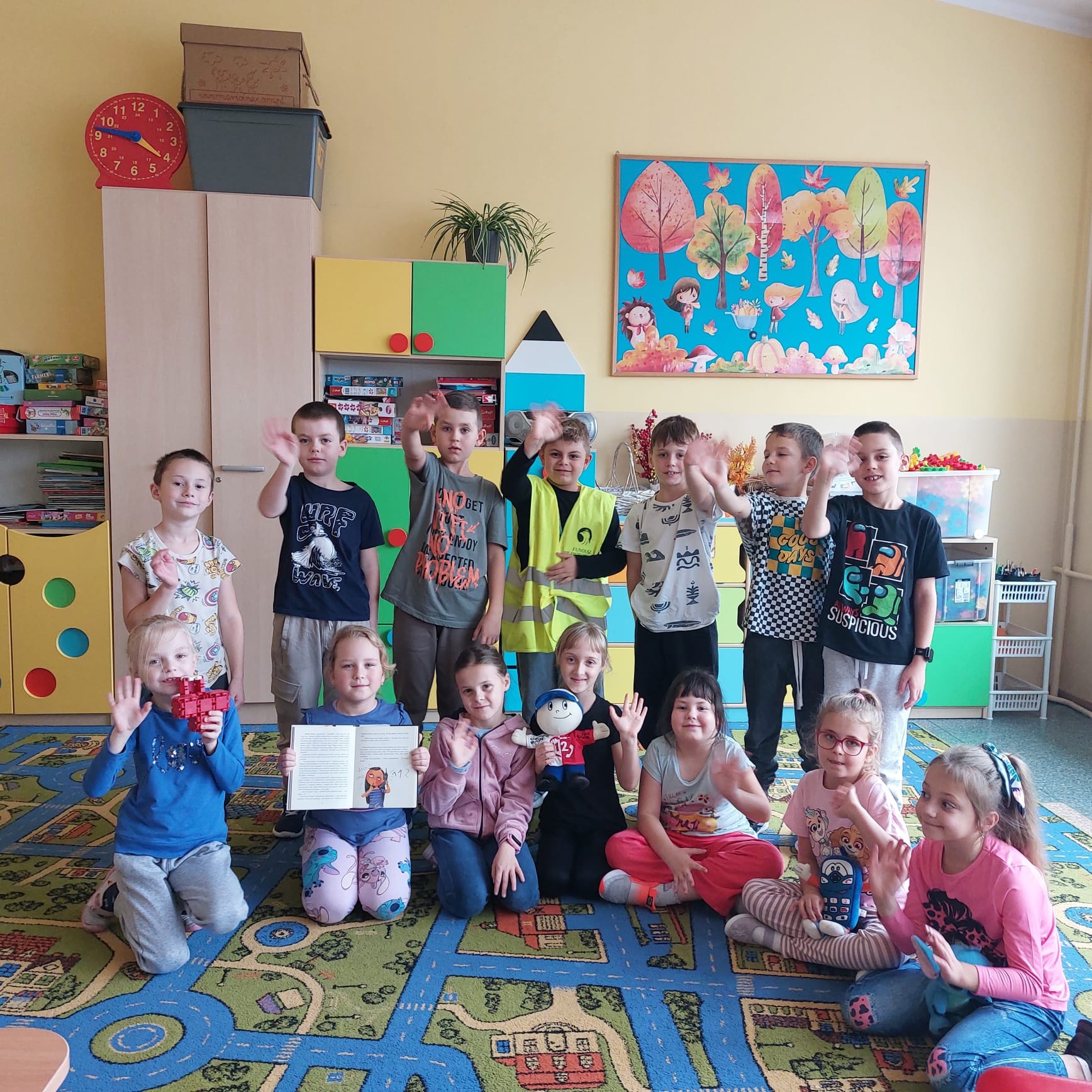 Dzieci z zaangażowaniem wymyślały słowa i melodię, podkreślając, jak ważne jest, aby być widocznym na drodze – zwłaszcza jesienią i zimą.